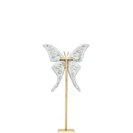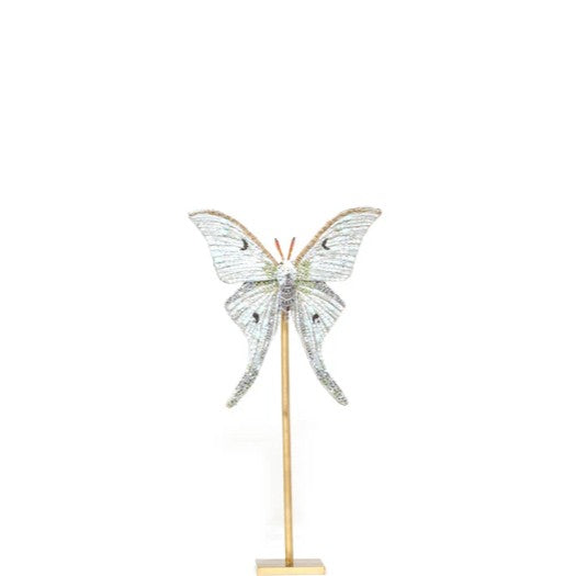 Transform your space with this stunning moon moth object art, meticulously hand-embroidered by skilled artisans in India. Each piece is a wearable work of art featuring intricate beadwork, sequins, and felt appliqué that captures the ethereal beauty of the luna moth.